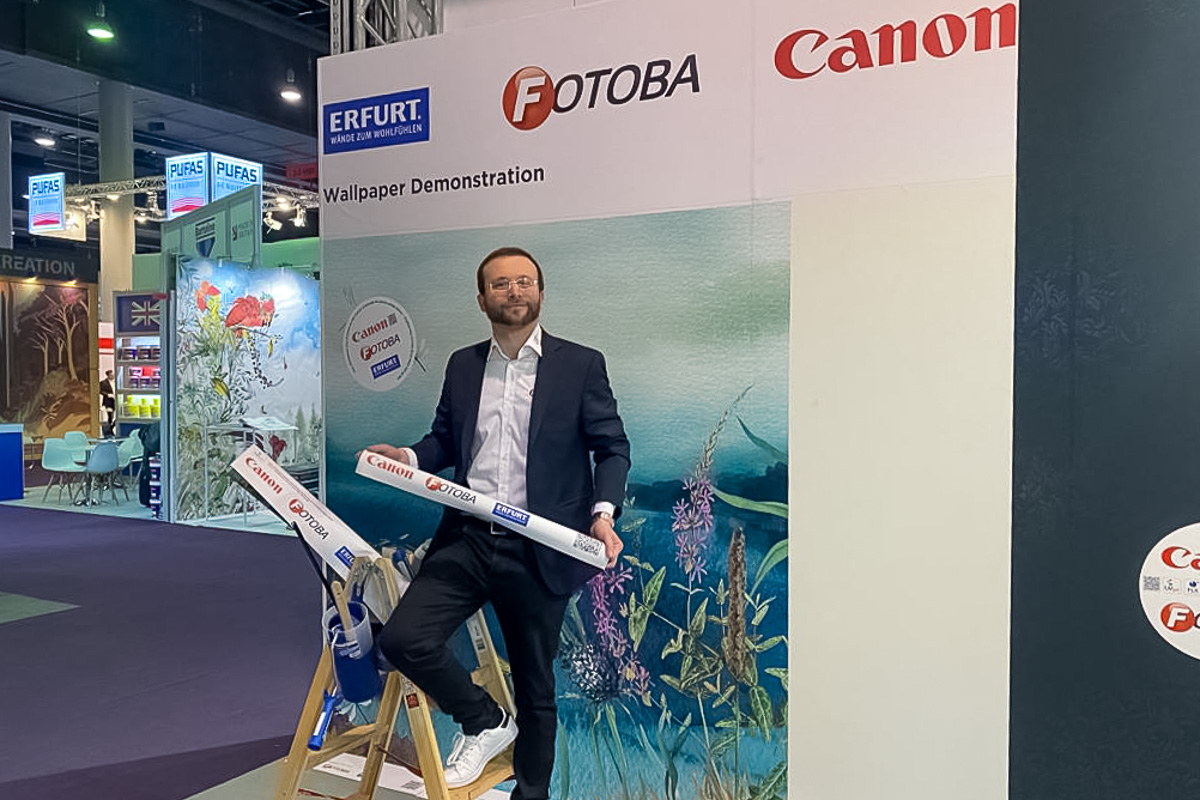 In unserem Fall hatten wir auch einen professionellen Tapezierer vor Ort, der die Qualität unserer Endprodukte an der Wand als Druck und Schnittqualität sowie Passer Genauigkeit demonstrierte.